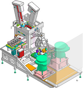 Equipment compactification realized by numerical control of the parts picking process and the application of slide jigs.